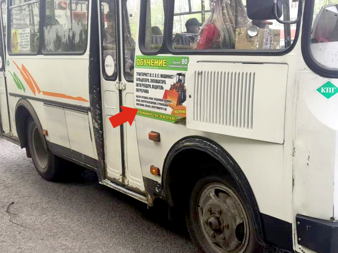 Размещение на заднем стекле ПАЗ